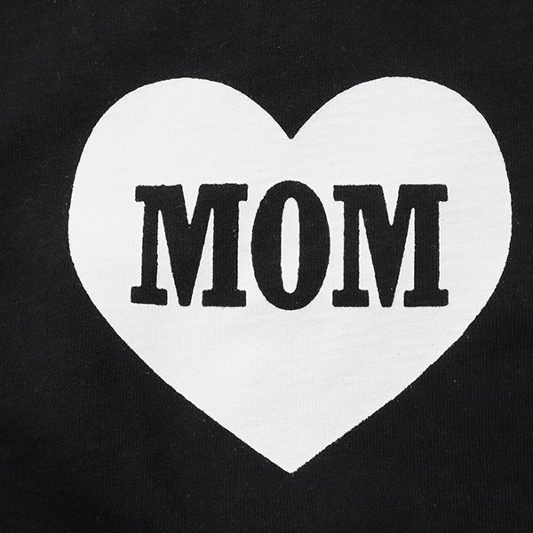 フロントのMOMプリントが目を引く半袖Tシャツ。