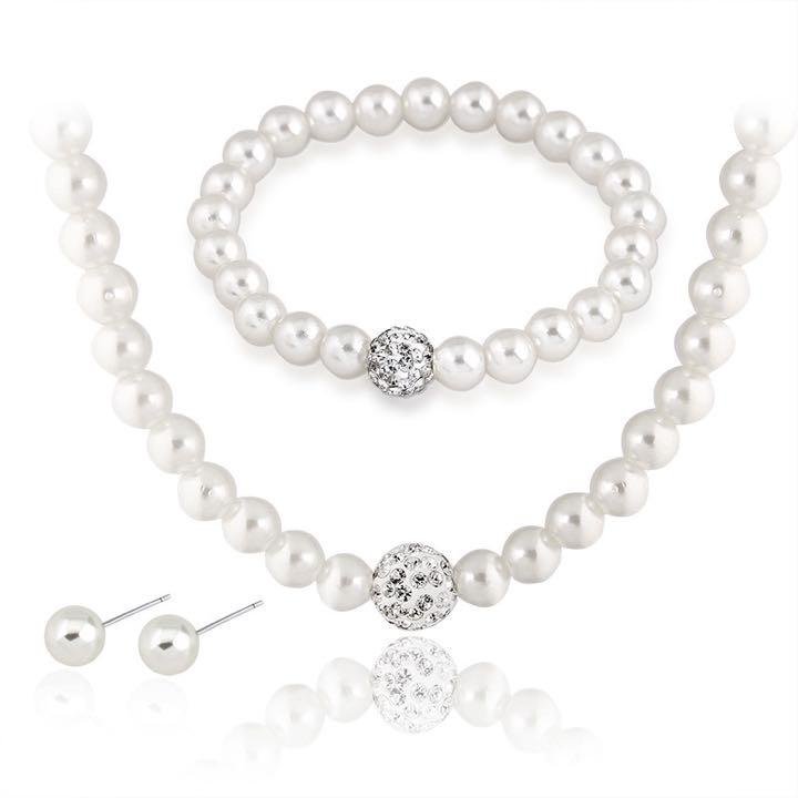 レディース ネックレス &ピアス&ブレスレット 3点セット ラインストン 人工パール