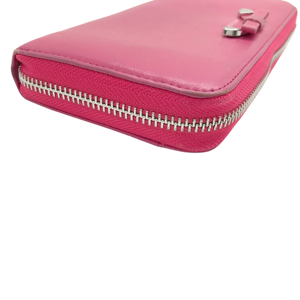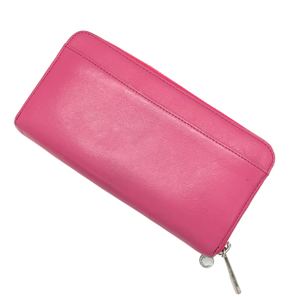 【中古】【やや傷や使用感あり】ロゴ ピンクラメ ジップアラウンド長財布