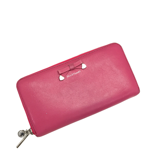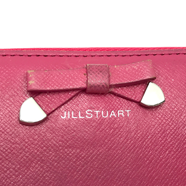 フロントに「JILL STUART」ロゴあり。表側にポケット×1、内側にカードポケット×14、マチあり札入れ×3、ポケット×4、ファスナー開閉式小銭入れの付いた収納力のある使い勝手の良いジップアラウンド長財布です♪