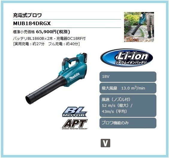 標準付属品 | ショルダーベルト・六角棒スパナ 充電器(DC18RF)・バッテリ(BL1860B)×2本 |