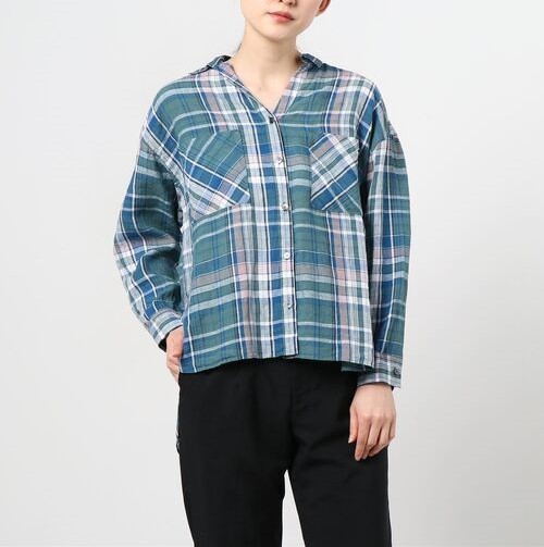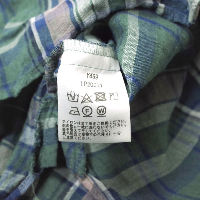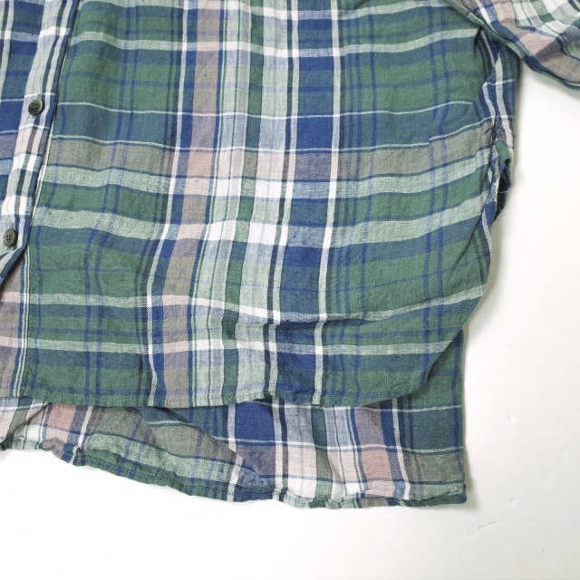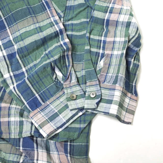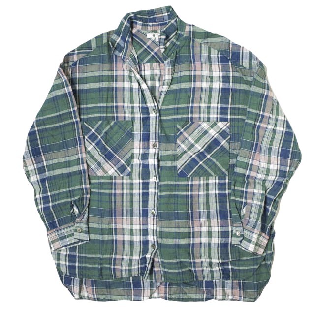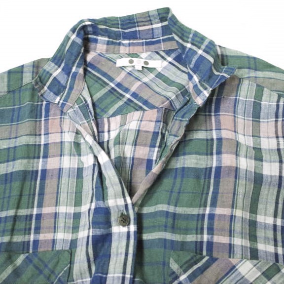 three dots スリードッツ 日本製 Linen Plaid L/S Over Shirt リネンプレイド オーバーシャツ LP2001Y S Green チェック スキッパー g13262