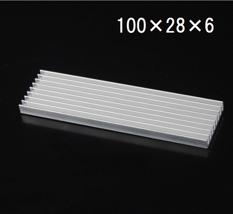 2個セット アルミ ヒートシンク 100mm×28mm×6mm 送料無料(空冷 冷却 放熱器 放熱板 伝熱 ラジエーター クーラー クーリング)