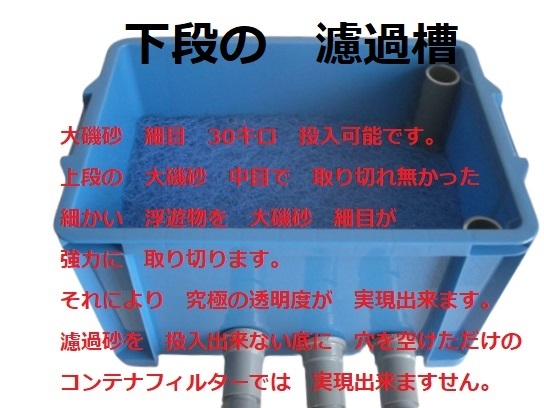 砂を 使用する事により より細かな浮遊物を  濾過する事が 出来ます。
