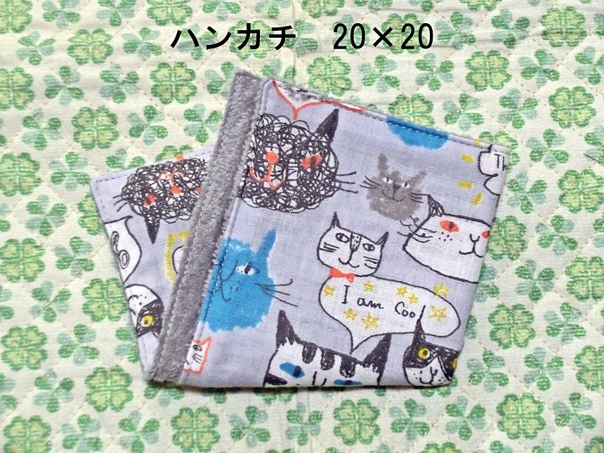 ★437★猫フェイス★ハンカチ★20×20㎝★ダブルガーゼタオル★handmade★