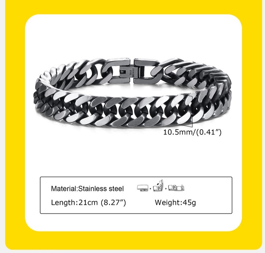 幅10.5ミリ 長さ約21センチ 重さ45グラム 素材:STAINLESS STEELE |