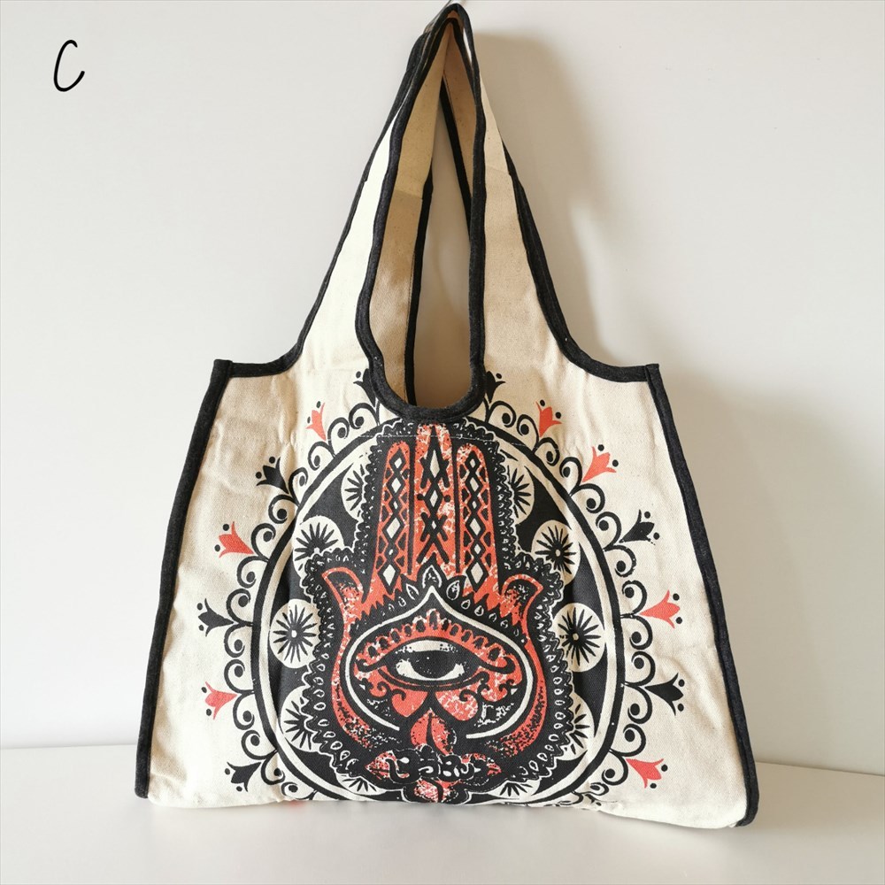 ★エスニック トートバッグ エスニックプリント 送料込★新品未使用C★キャンバス素材 アジアン ママバッグ 帆布