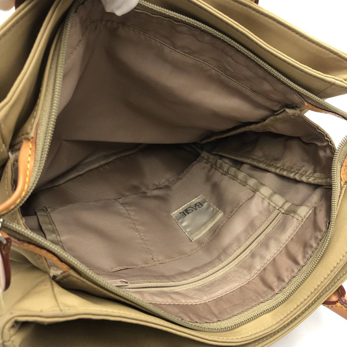 当商品にご興味をお持ちくださり誠にありがとうございます。 ◆サイズ◆ タテ...約29cm ヨコ...約23cm マチ...約13cm ハンドル立ち上がり...約20cm ※手作業にて平置きでの採寸をしておりますので、誤差が生じる場合がございます。ご理解の程よろしくお願いします。 ◆商品説明◆ こちらの商品はBASILEのトートバッグとなります。 外側に大きなボタンポケットが2つ、内側にファスナーポケット、小物ポケットが付いており見た目よりも広々とした空間をもっております。 全体的に使用感はありますが、まだまだご使用いただけます。 メインのポケットの内側口周りにシミのような汚れが見受けられます(画像6) 側面に一箇所黒い汚れが見受けられます(画像9) 若干の角スレが見受けられます。 ※注意事項※ ●【中古品】という事をご理解いただいた上でノークレーム、ノーリターンでお願い致します。 ●匂いに敏感な方の入札はお控えください。 ●お使いのモニターにより実物と色味が異なる場合がございます。 ●特に目立つ傷や汚れ等はなるべく写真に写るように撮っておりますが、掲載枚数の関係上どうしても写す事が出来ない場合がございますので、その際は見落とし等がない場合を除き文章の方でご説明させて頂いております。 ●付属品が付く場合、付属品はあくまでも無料ですので、状態、詳細等の記載は省略させて頂く場合がございます。 ●商品の状態は主観による表記の為、受け取り方に個人差がございます。 | |||