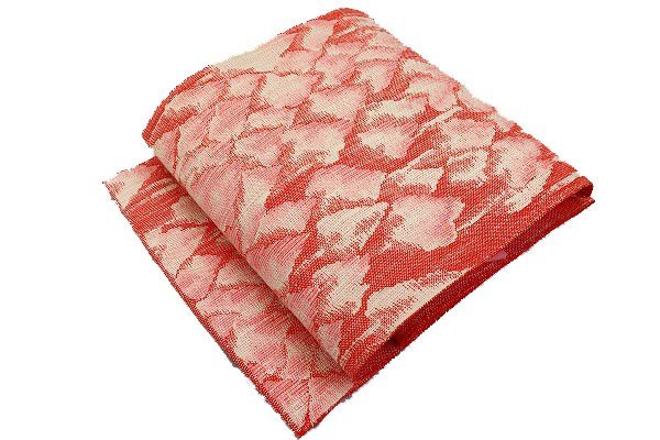 【着物フィ】未使用品 名古屋帯 紬地 紬 朱赤 ピンク 長さ3m47㎝ お洒落 正絹 仕立て上がり m-5386 |