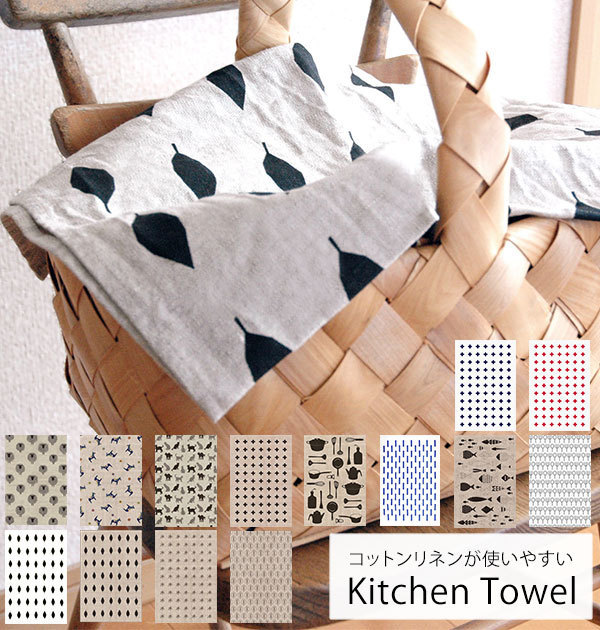 商品説明 | 使うほど暮らしに馴染むキッチンタオル♪綿麻混合で乾くのが早く丈夫な作り! 布巾、台拭き、手ぬぐい、キッチンマットと色々使えて便利です。可愛い柄なので何枚も揃えたくなりますね。 |