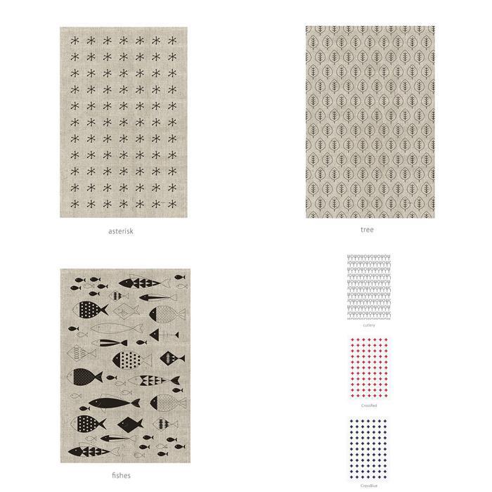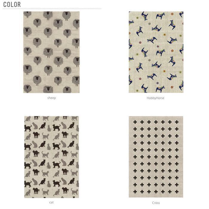 素材 | ※柄によって異なります HobbyHorse 麻59%・綿41% Linje LeafWH cutlery 麻50%・綿50% sheep cat Cross KitchenTool LeafNatural asterisk tree fishes 麻55%・綿45% |