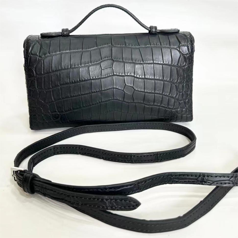 上品 マット仕上げ ナイルクロコダイル ショルダーバッグ 手提げバッグ 鰐 ワニ革本物 黒 かわいい