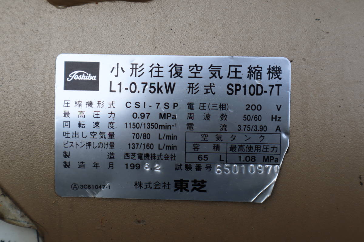 | 東芝エアーコンプレッサー SP10D-7T 0.75kW(1馬力) 三相200V 動作確認済 即決価格 | ||