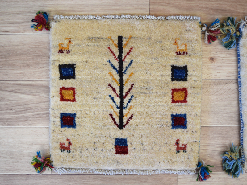 新品 ペルシャ ギャッベ 座布団 クッション サイズ ミニラグ 41 x 41 cm No.2537 肉厚 ウール 手織り 絨毯 ギャベ チェアマット