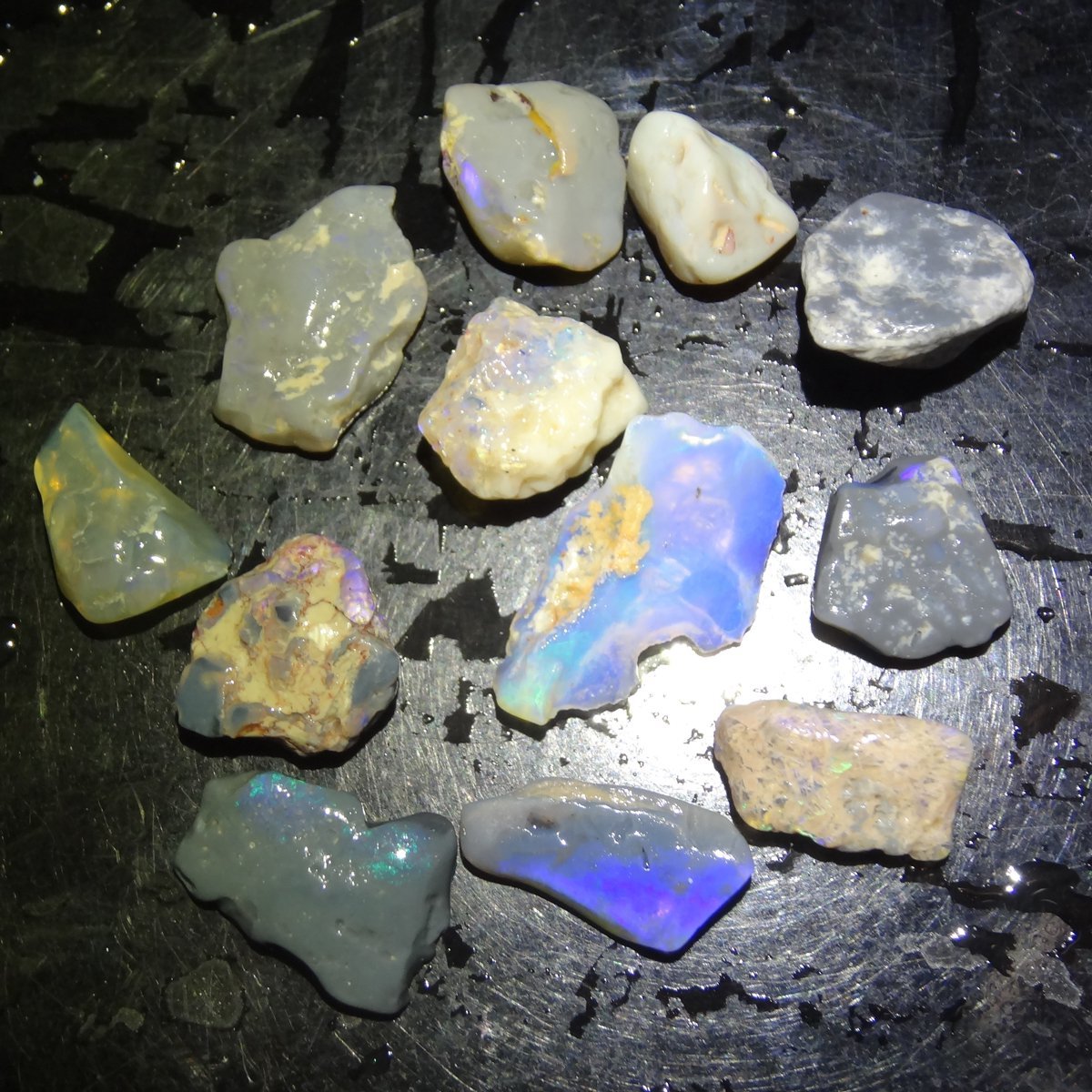 ブラックオパール原石でございます、遊色多めのロットとなってございます。