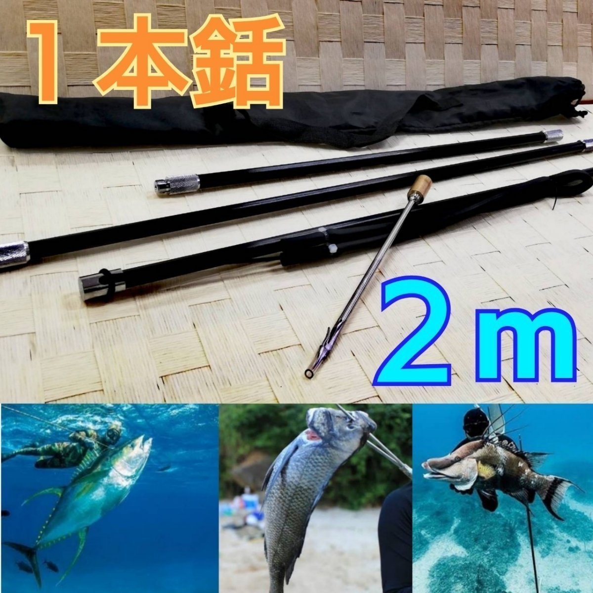 一本銛!!銛 4点セット カーボンファイバー製 3ピース 205cm 手銛 スピアフィッシング クラスタースピア ポールスピア ヤス ダイビング シュノーケリング ハンドスピア