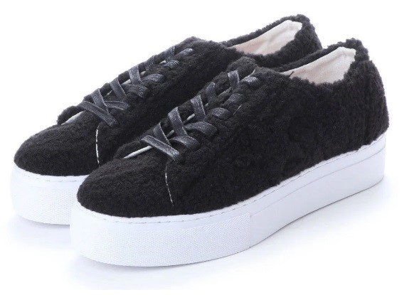 新品・1万3200円★ふわふわボアのローカットスニーカー★ブラック・替え紐付き