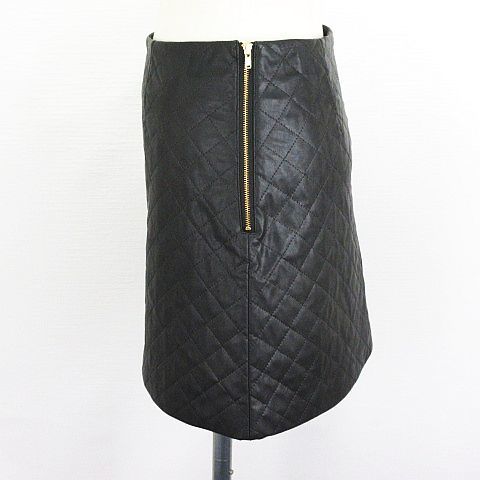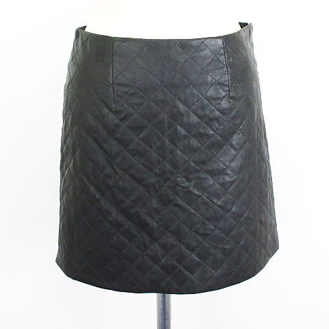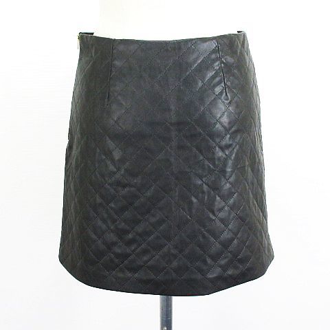 インデックス INDEX スカート ボトムス ミニ丈 台形 フェイクレザー キルティング S ブラック ※EKM レディース
