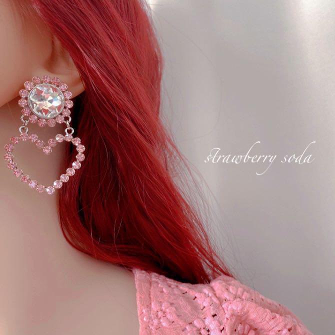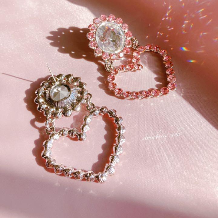 ピンク ビジュー 大ぶり ハート ピアス アイドル 量産型 姫系 ロリータ ガーリー コスプレ コンカフェ サブカル 地雷 韓国ファッション