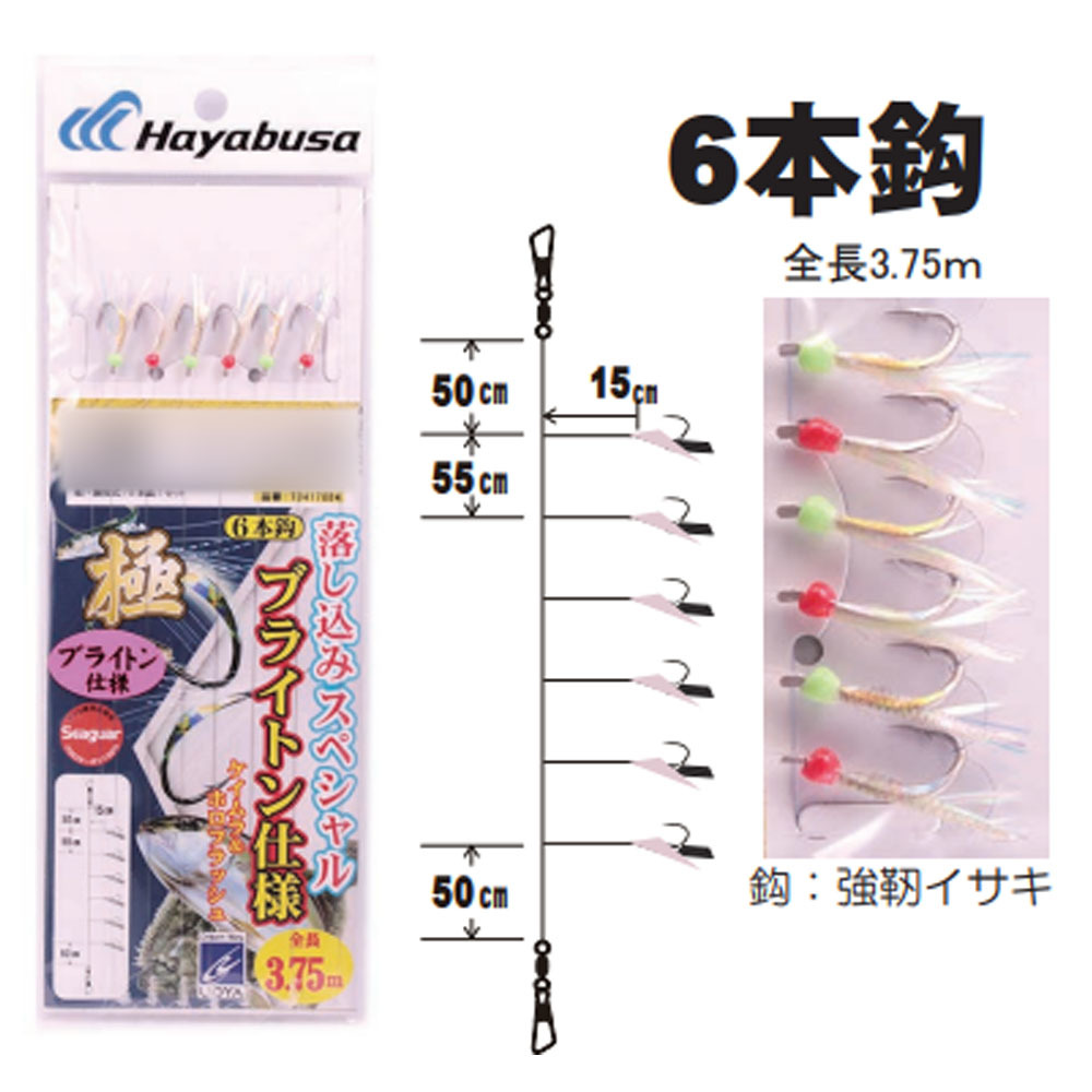 【10Cpost】ハヤブサ 極 落し込みスペシャル ブライトン仕様 6本鈎 針11号 ハリス14号(haya-144816)