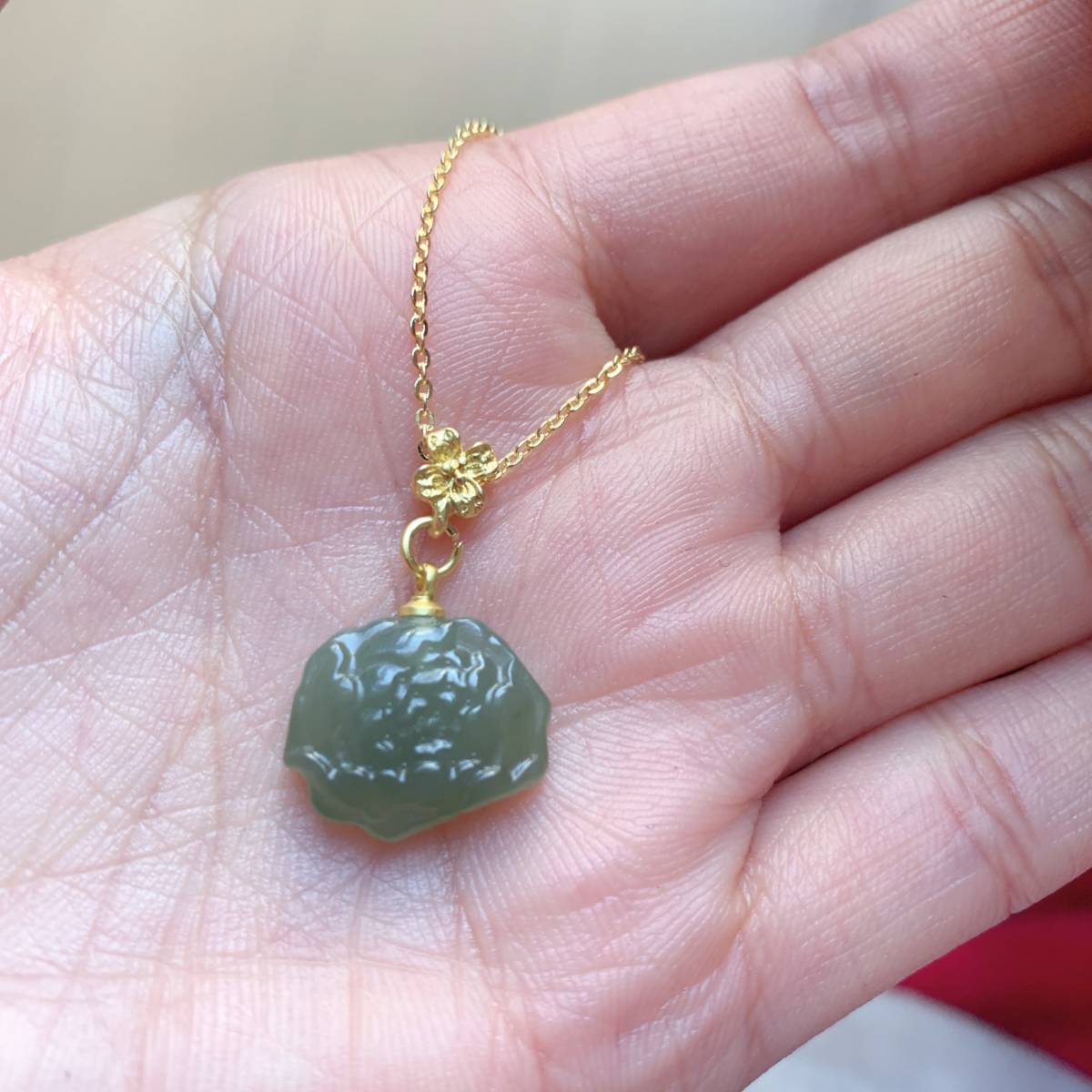 訳あり◇和田玉◇翡翠・ヒスイ◇ネックレスペンダント◇牡丹 彫刻◇天然石◇パワーストーン◇巾着袋付き◇プレゼントに 026P120609