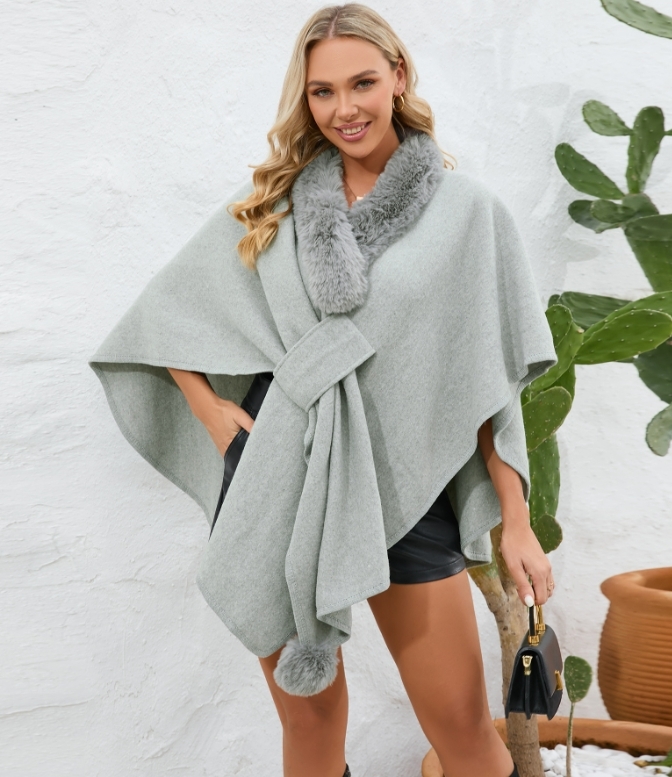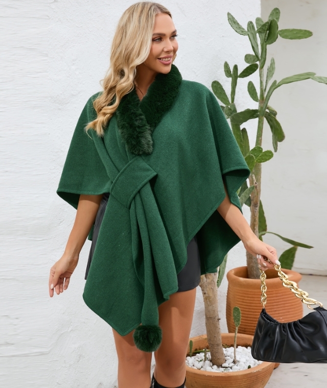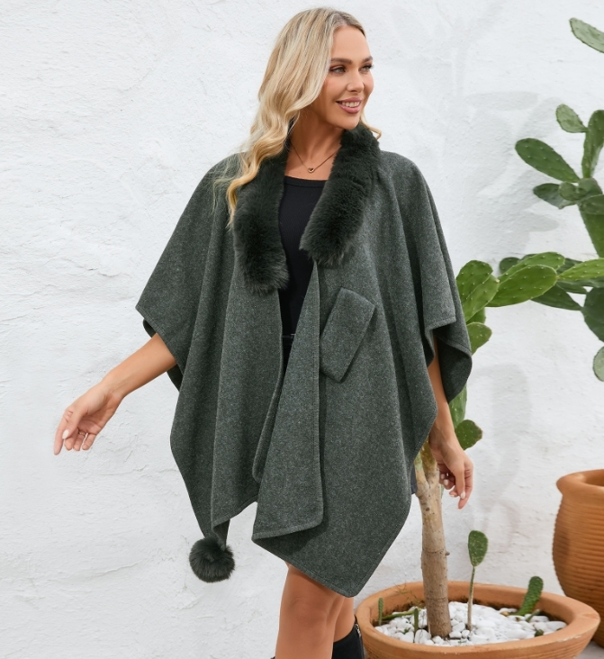 レディース エレガント チェスターコート ポンチョ マント アウター 無地 厚手 秋冬 K381