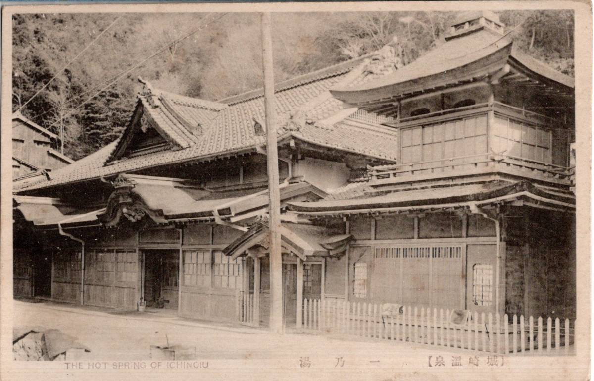 絵葉書 城崎温泉 一乃湯 兵庫県豊岡市温泉観光地旅館建物絵はがき 尾張内海某氏宛 壹銭五厘切手貼付 エンタイア実逓便絵はがき