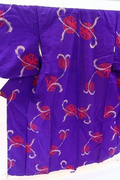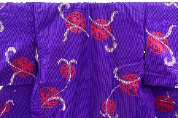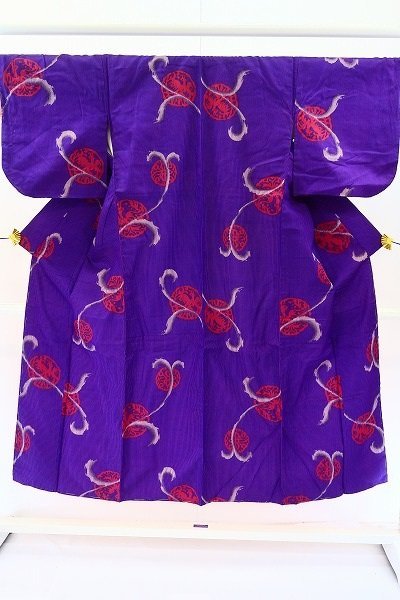 【着物フィ】アンティーク 紬 青紫 身丈143.5cm ビビット お洒落 大正ロマン レトロ 仕立て上がり 正絹 kimono 15080 |
