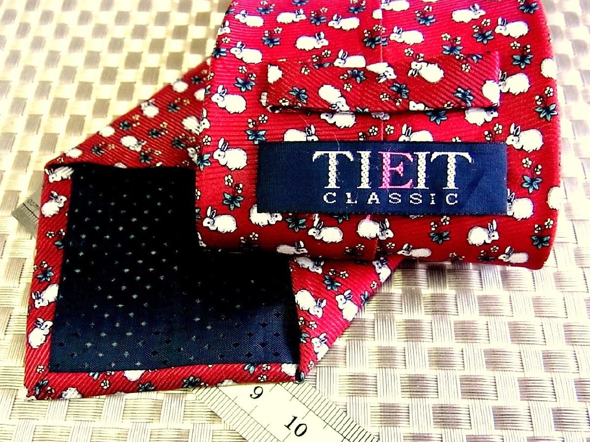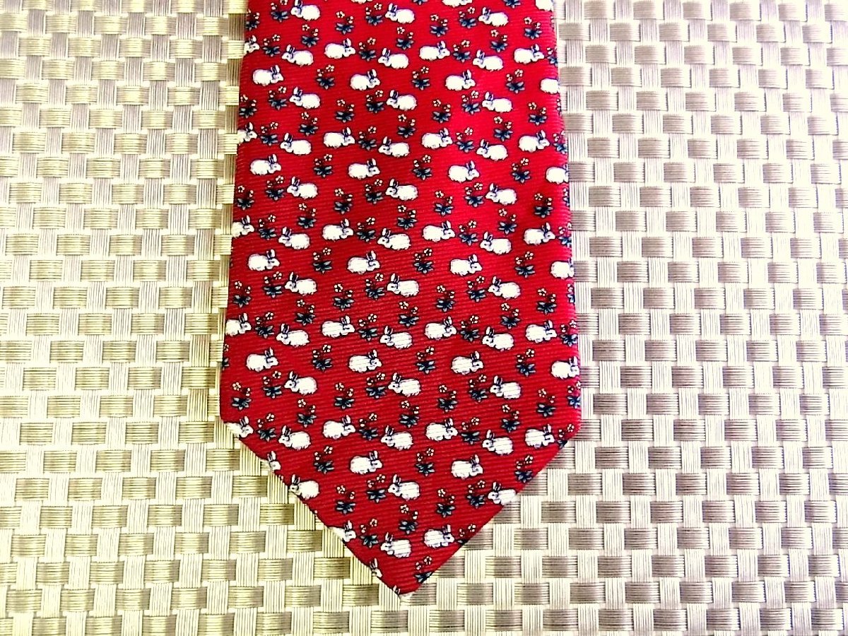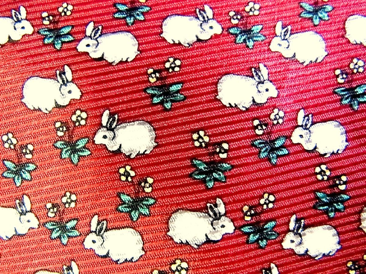 DC01177♪良品【キャラ柄】シルク100%「兎 うさぎ 動物 花 植物」ネクタイ♪