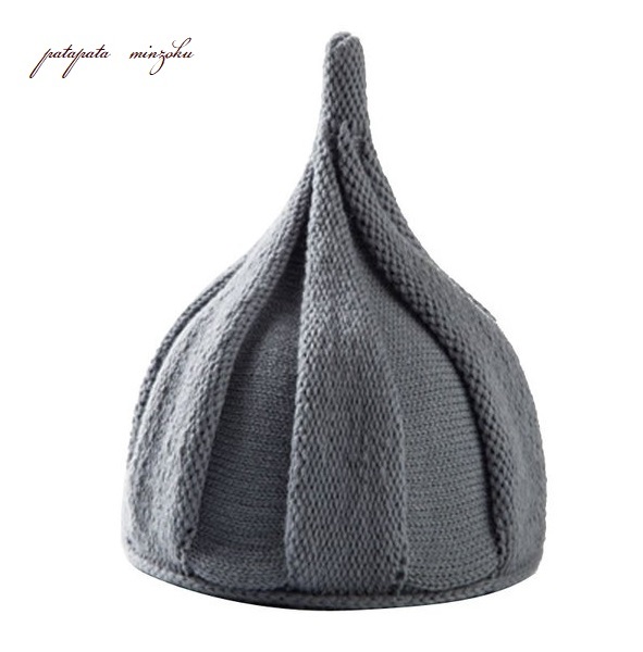 とんがり帽子 とんがりニット帽 グレー 子供用 キッズ ニット パタミン 帽子