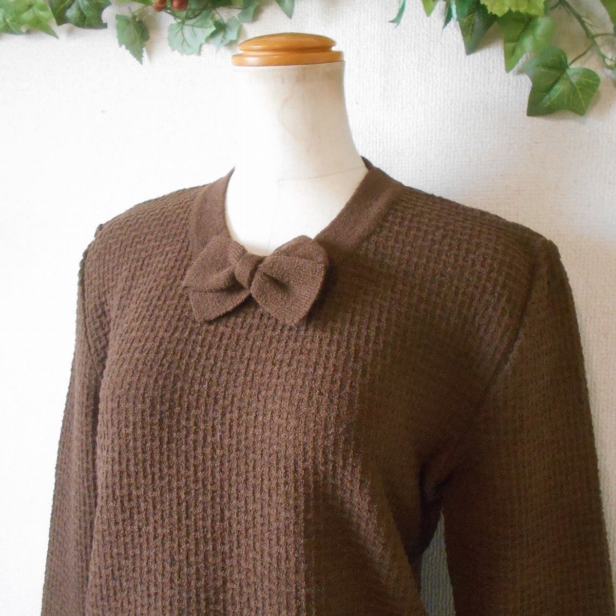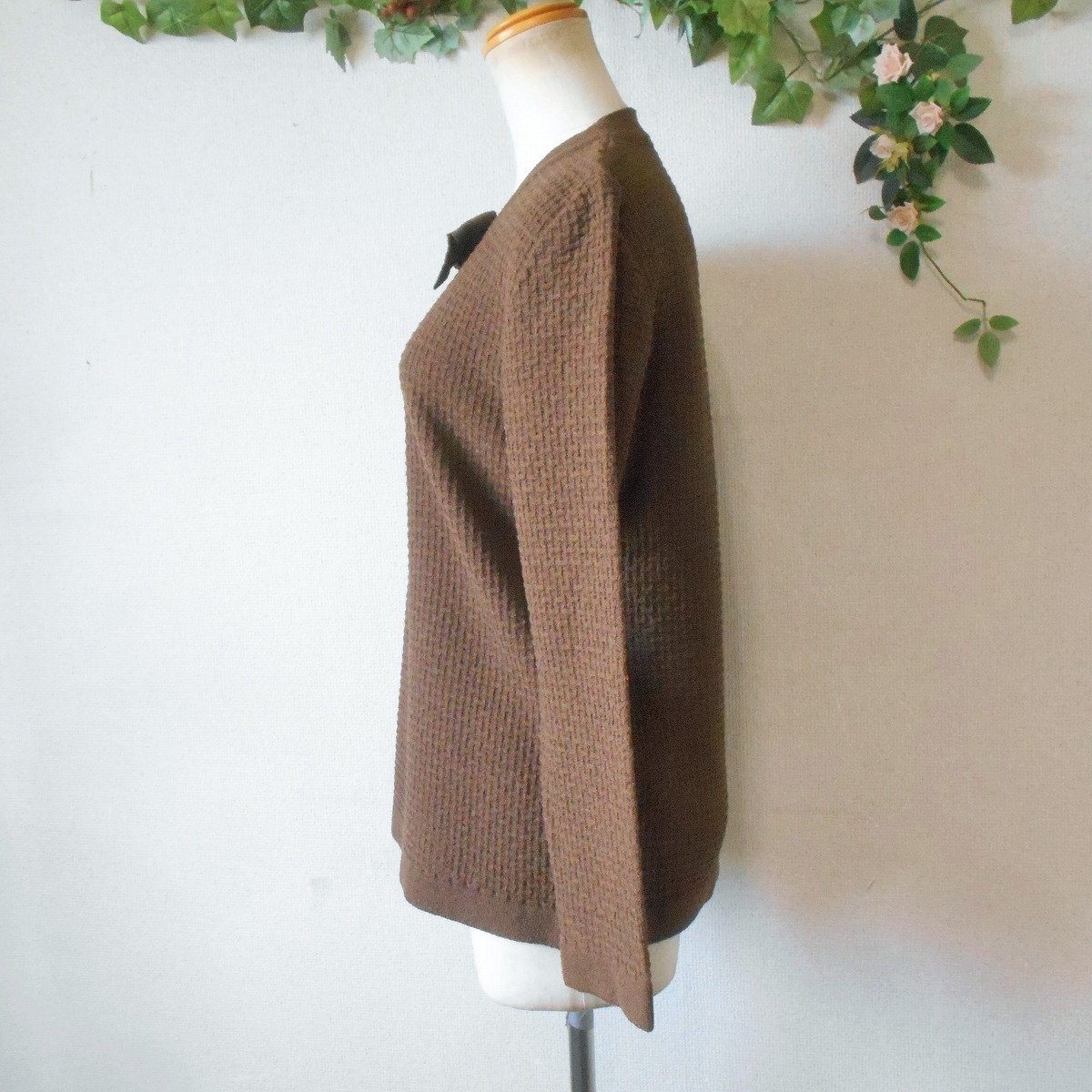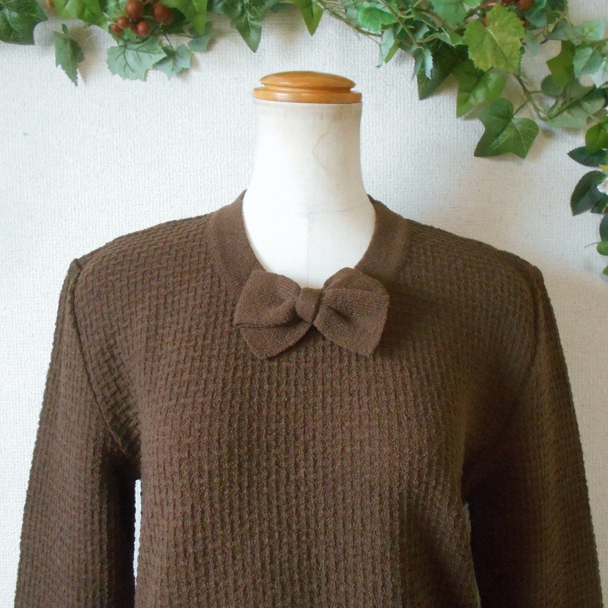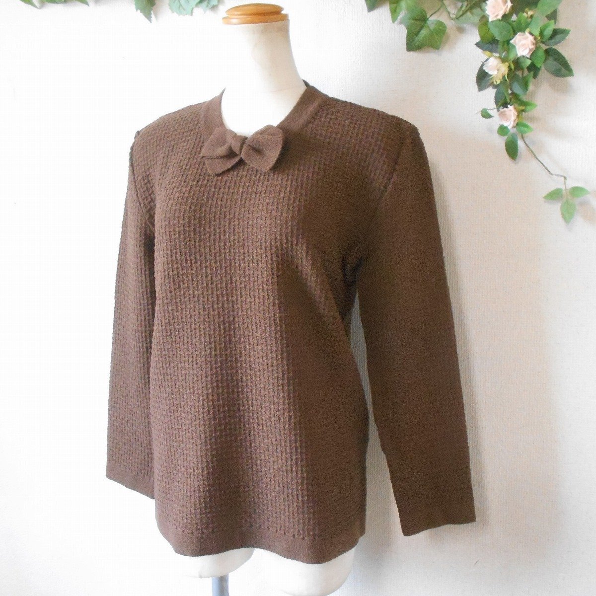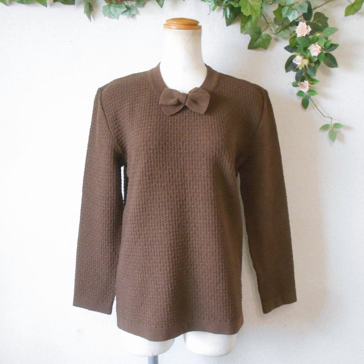 【ポイント】インゲボルグのセーターになります。お色はブラウン系で秋冬を中心に着ていただけるお品です。首元にはリボンが付いたデザインで、とっても素敵な一着です。