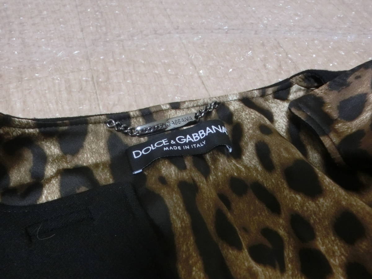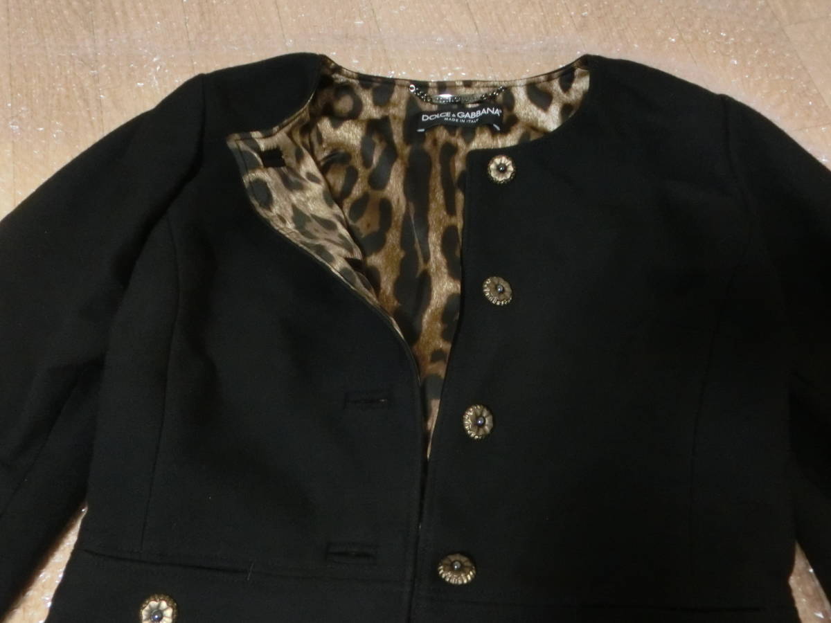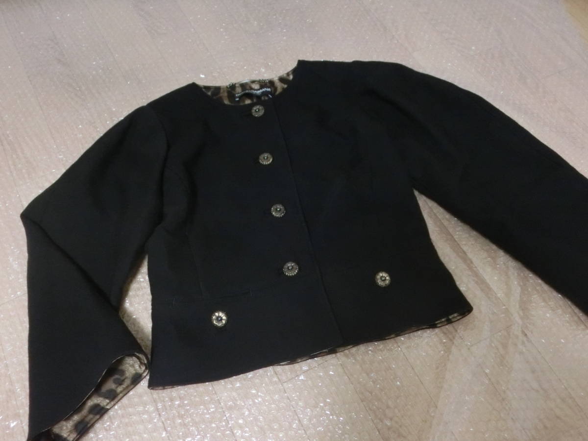 DOLCE&GABBANA/ドルチェ&ガッバーナ/内レオパード柄ウールノーカラージャケット♪クロ/size38/定形外可