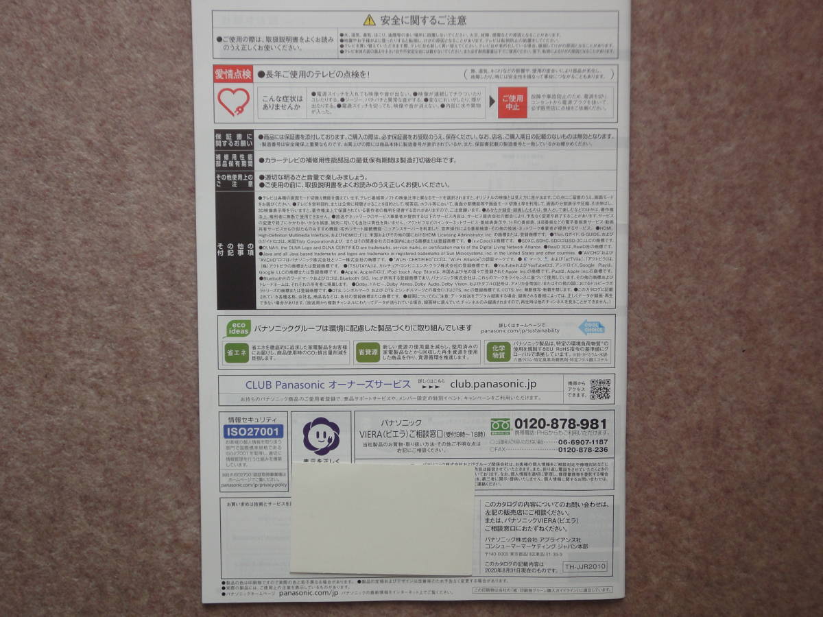 パナソニック テレビ カタログ ビエラ VIERA Panasonic 2020年8月