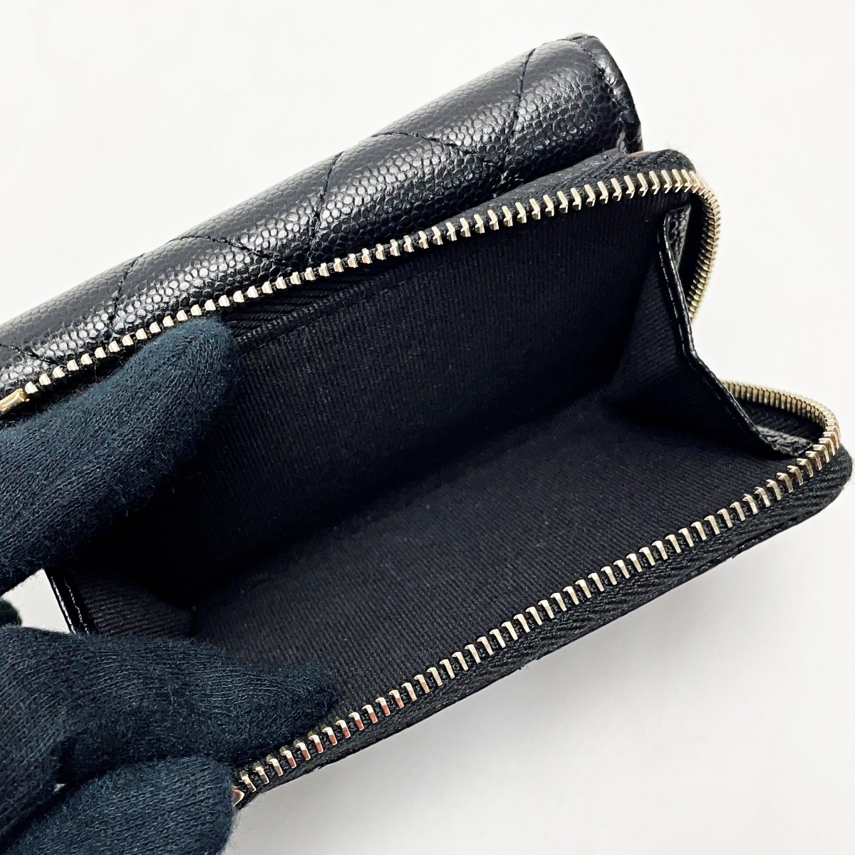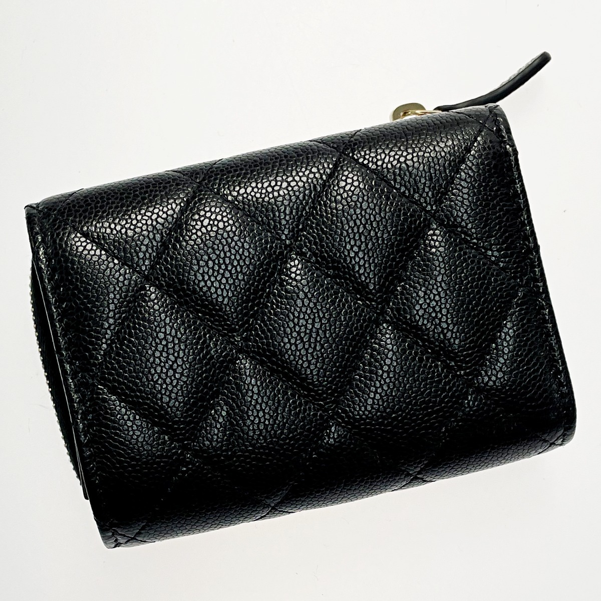 【商品名】中古 CHANEL シャネル ジッピーウォレット ブラック 3つ折り財布 キャビアスキン レディース ゴールド金具 目立った傷や汚れなし