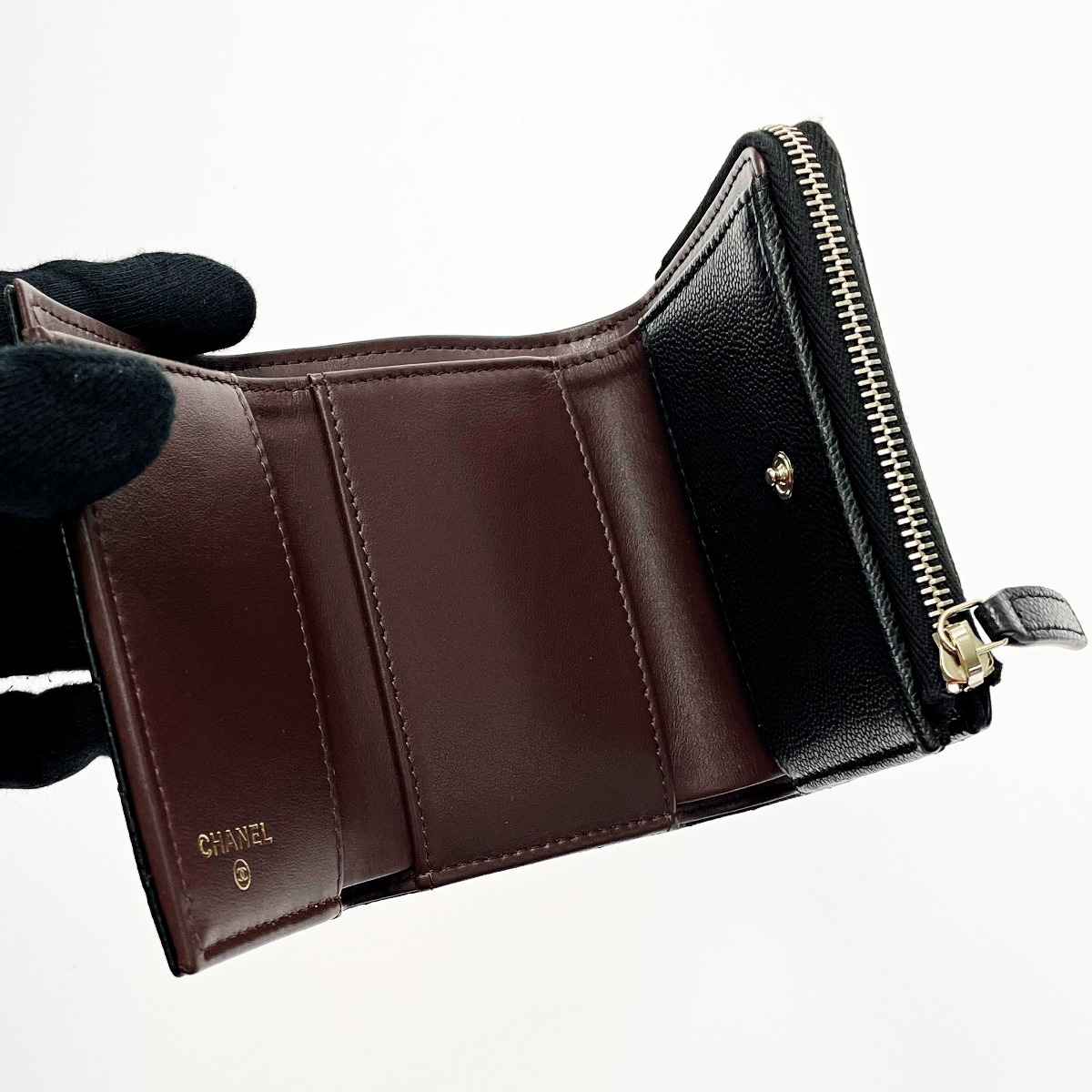 ☆☆ CHANEL シャネル ジッピーウォレット ブラック 3つ折り財布 キャビアスキン レディース ゴールド金具 目立った傷や汚れなし