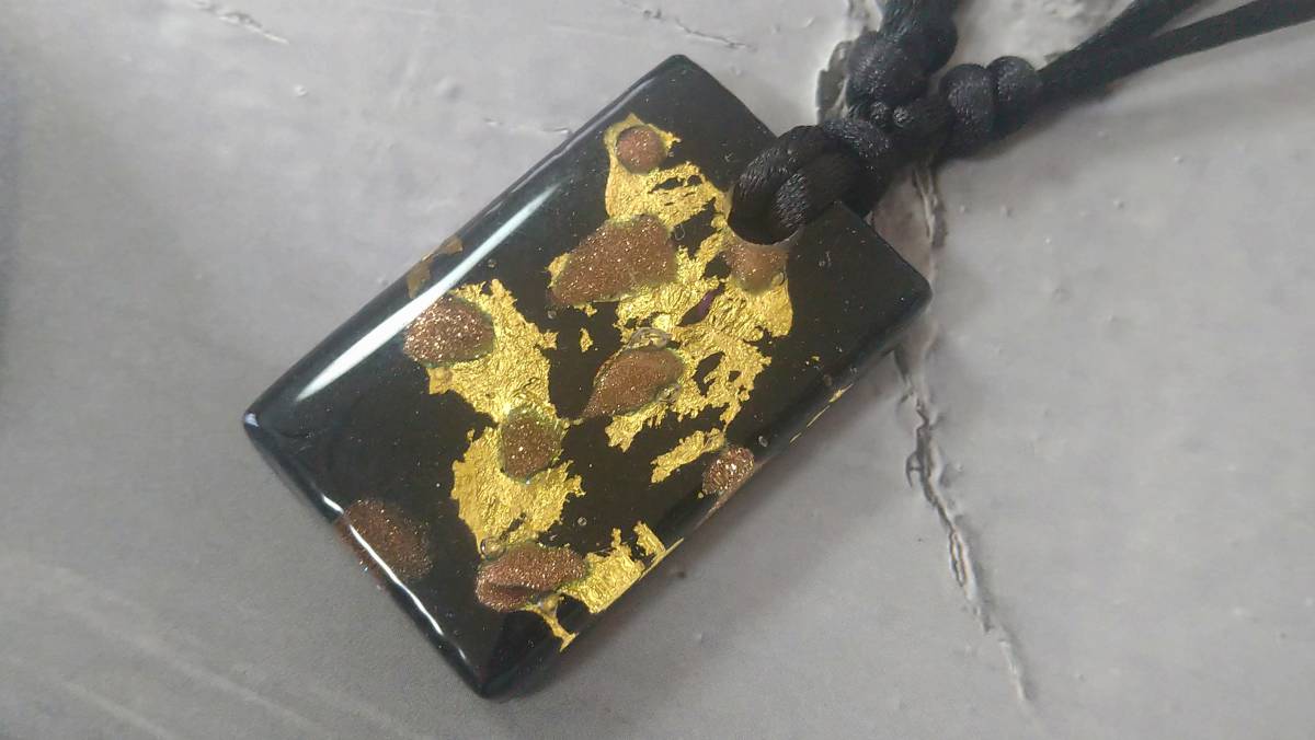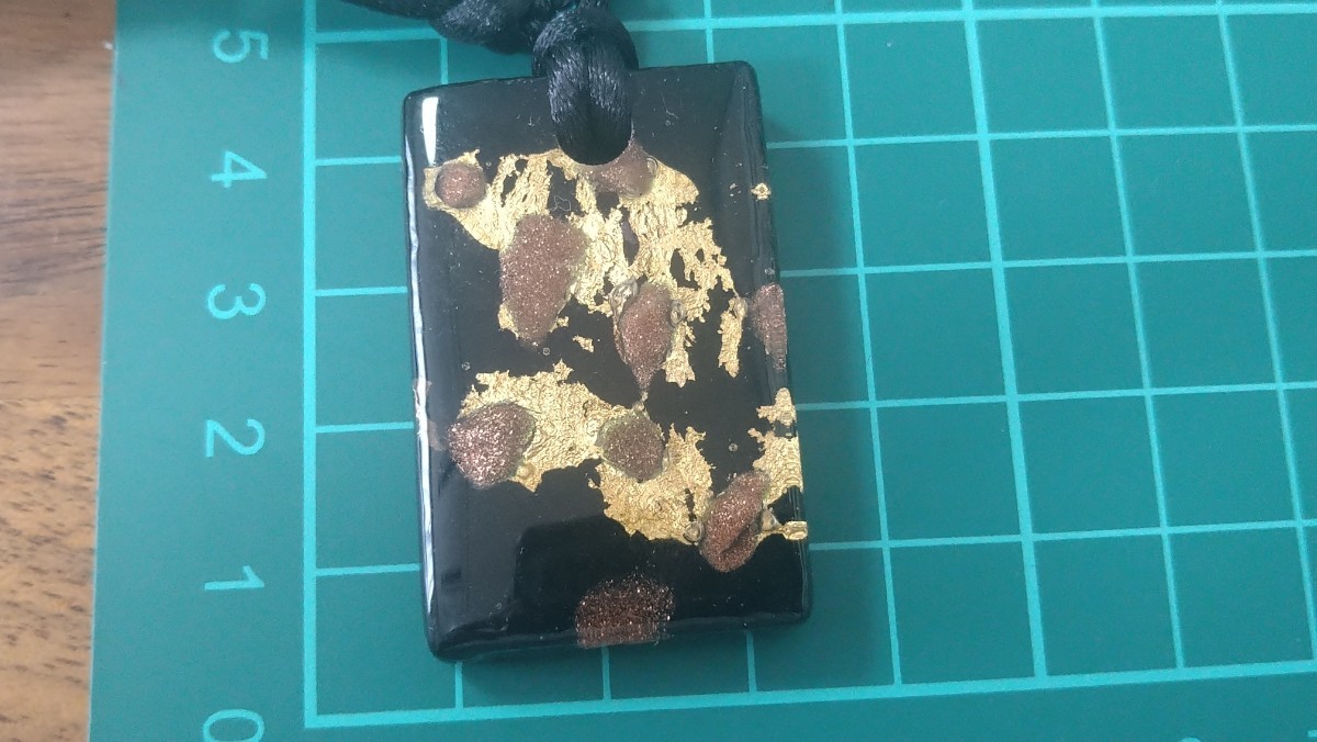 | 黒×ラメ入りゴールドカラー×茶色 長方形プレート チャーム | |||