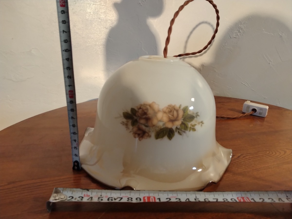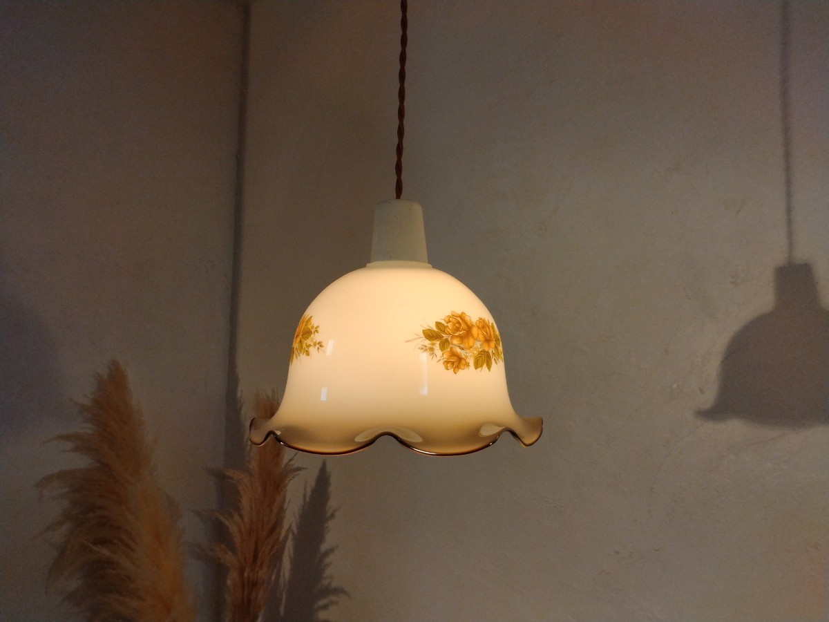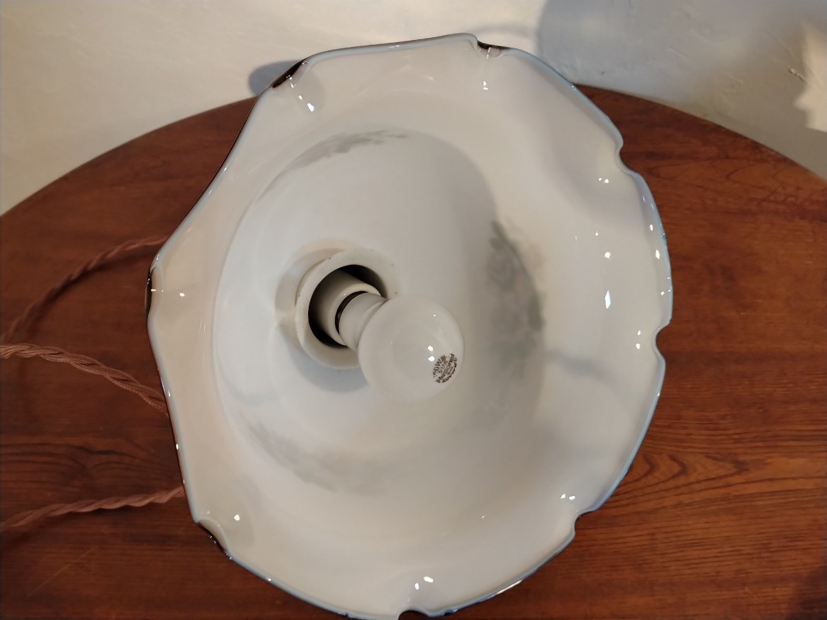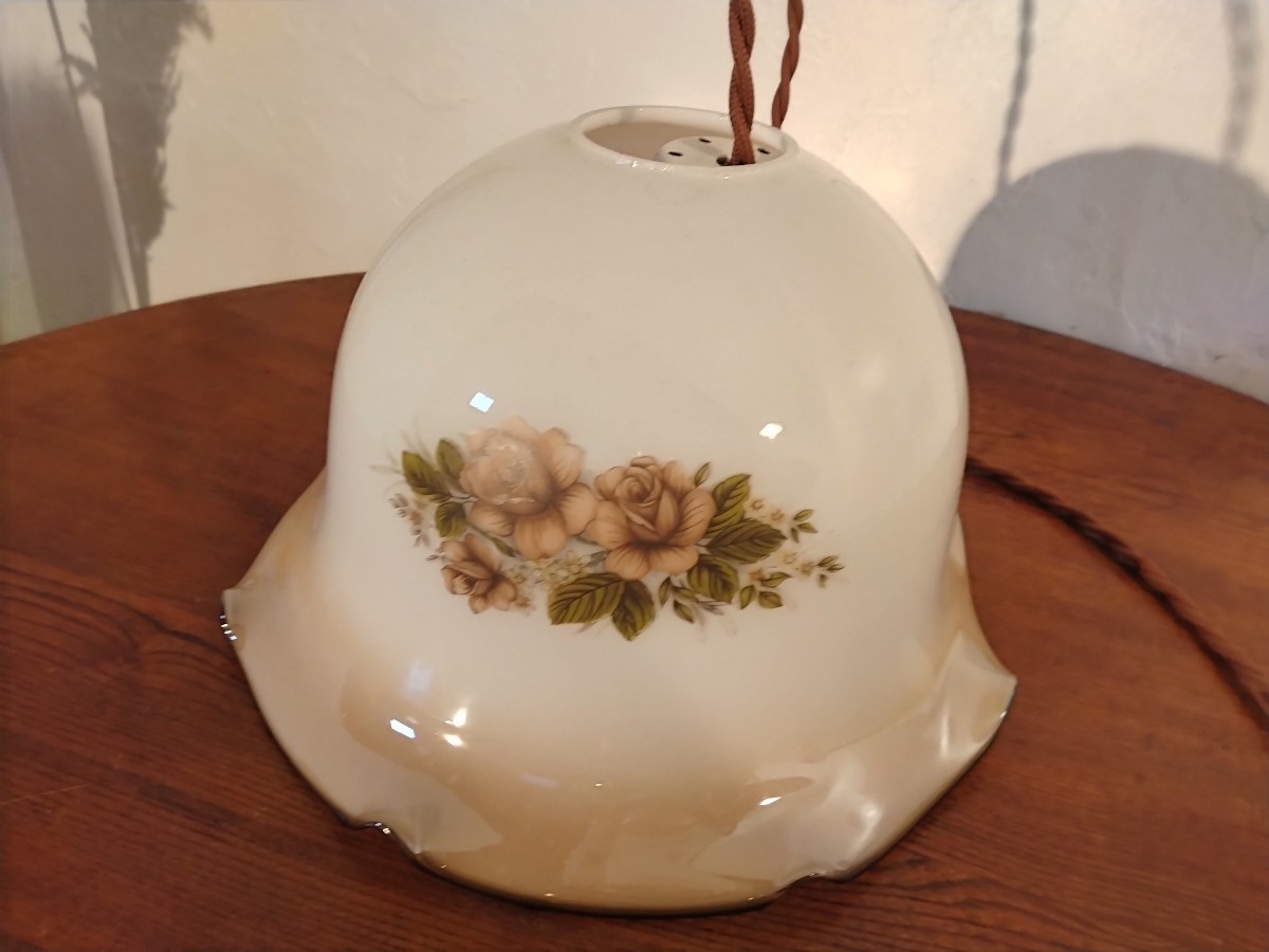 1212-10 フレンチスタイル/花柄デザインガラス/渕波/吊り下げペンダントライト①/配線新品交換済み