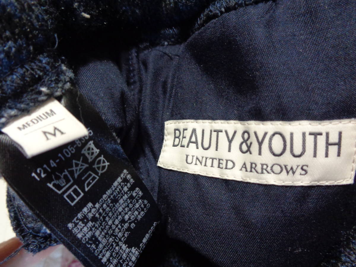 Mサイズ★BEAUTY&YOUTH ユナイテッドアローズ/肉厚裏起毛/ニットフリースパンツ/ジョガーアンクルパンツ/ツィード/ネイビー紺