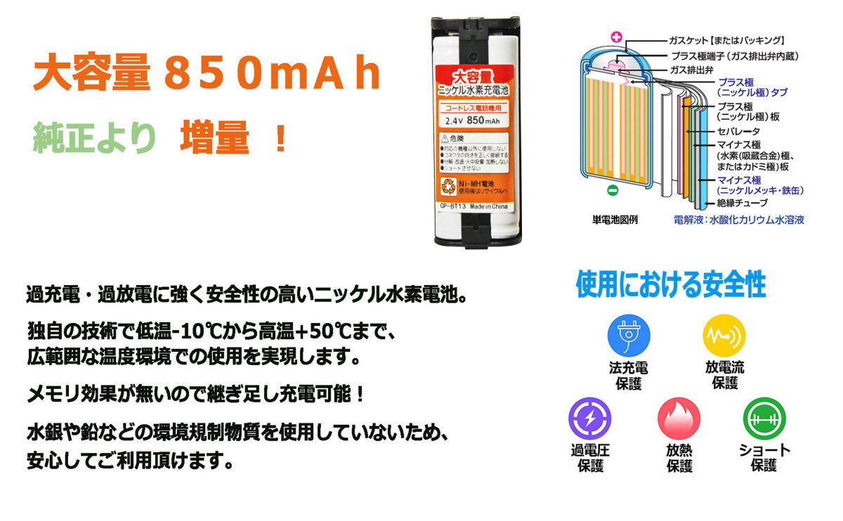 ※ニッケル水素電池は自然放電しますので、初期充電が必要な場合があります。