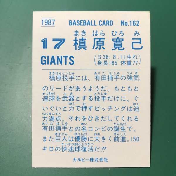 1987年 カルビー プロ野球カード 87年 162番 巨人 槇原 【管964】