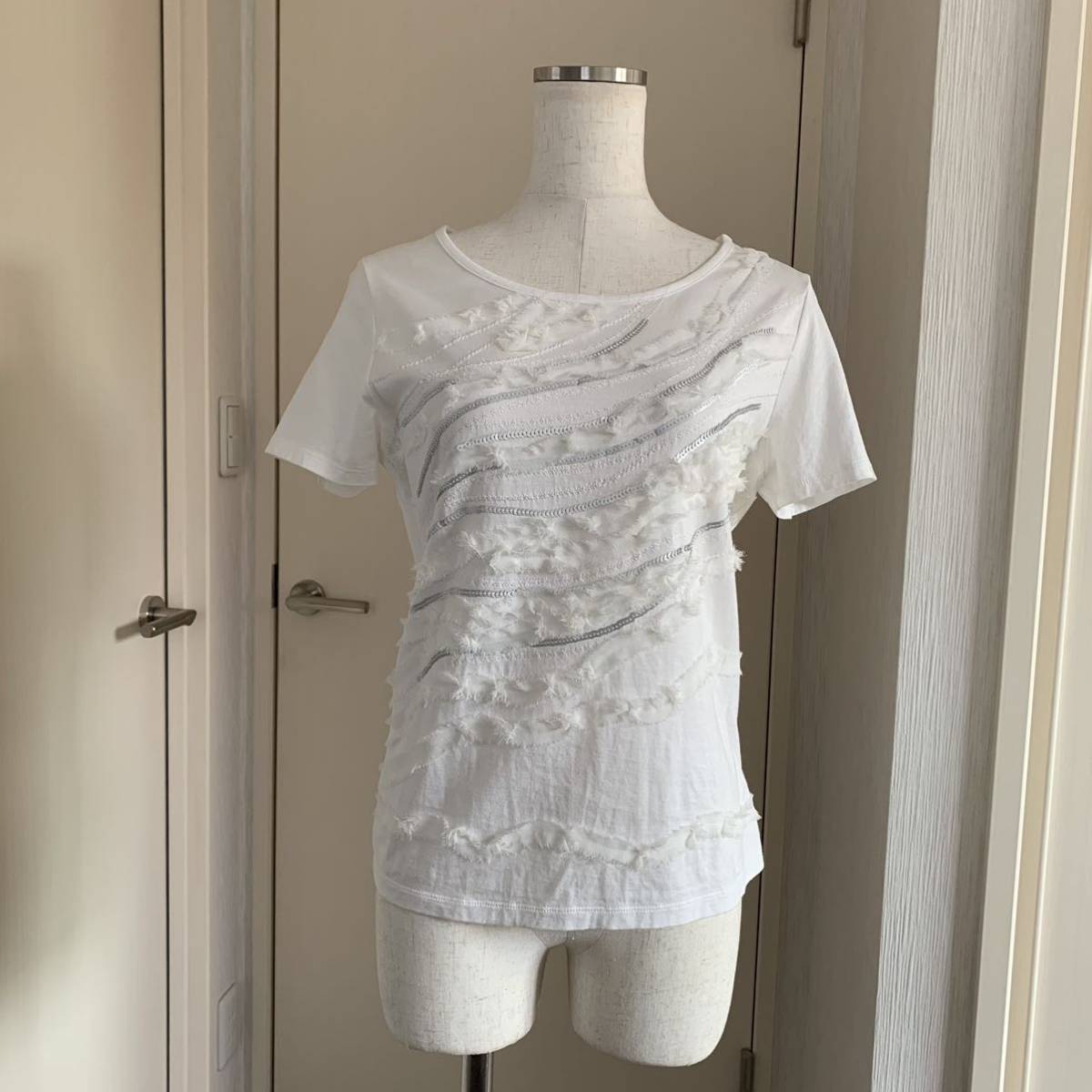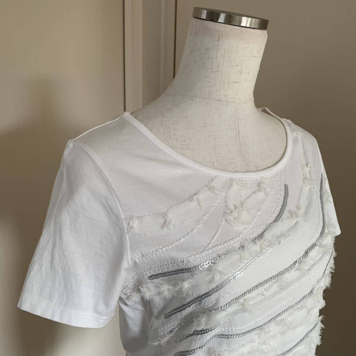 マットシルバーのスパンコールや繊細な刺繍、羽のようにふんわりしたフリンジテープが絶妙な配置です。