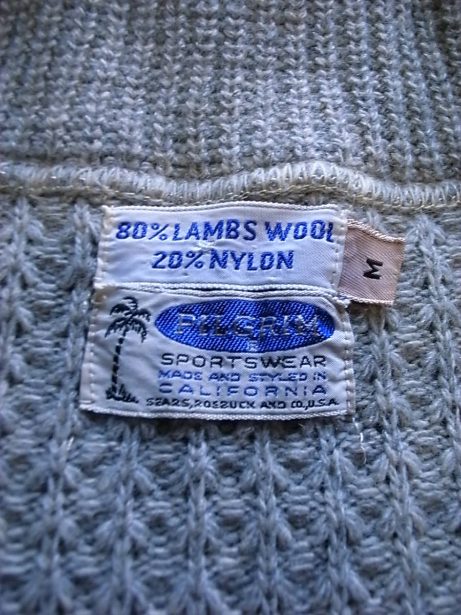 ビンテージ●60’s 米国製・PILGRIM SEARS ROEBUCK◆霜降り・IVY系 ウール・ショールカラー カーデガン・表示サイズM・グレー・