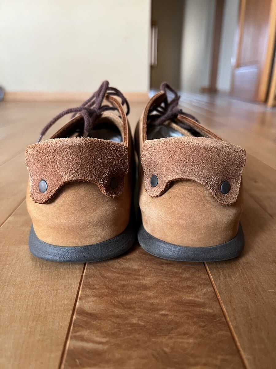 こちらは、同色のキャメルスエードとヌバックという質感が違うレザーを抜群のセンスで切り替えていて、かなり面白いです。