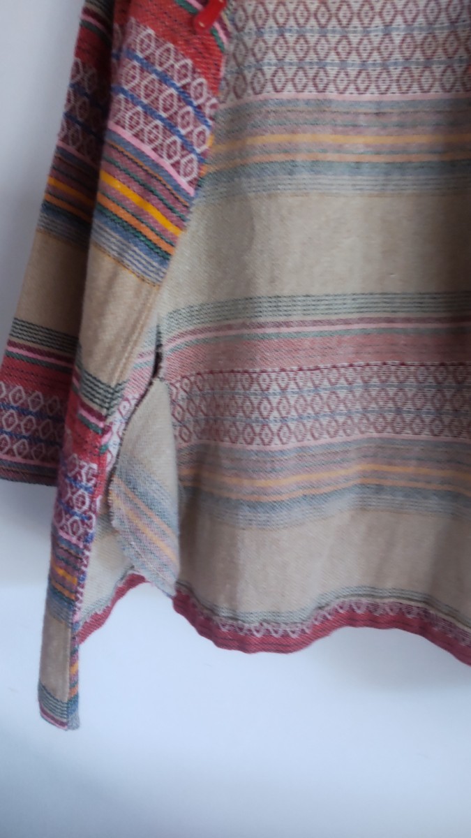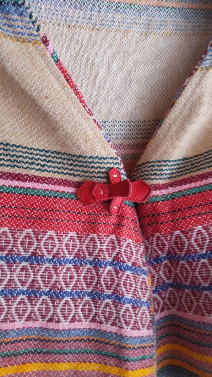 前開きが気になるのでレザーで止めを付けたのですが、うまくいかず留め部レザーが立ち上がっています。不要であれば縫い目を外して頂ければと思います。