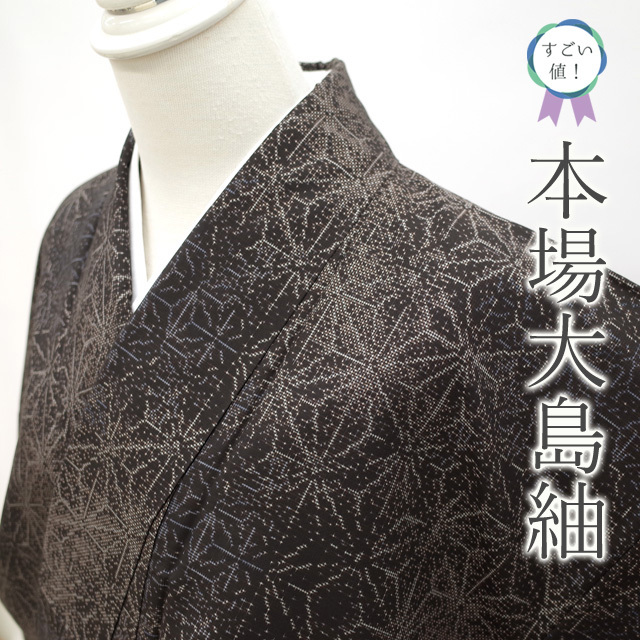 【中古】 すごい値! 本場大島紬 リサイクル 着物 袷 正絹 泥染 9マルキ カタス式 こげ茶 麻の葉 カジュアル 仕立て上がり 身丈162 裄丈64 Mサイズ 春 秋 冬 リサイクル着物 中古 大島紬 パールトーン加工済 細身 たとう紙付き 送料無料 普段着 観劇 お食事 ショッピング お出かけ など 最高級のカジュアル着物 20代 30代 40代 50代 60代 70代 80代 販売 購入 リユース すごいね みやがわ nek00903