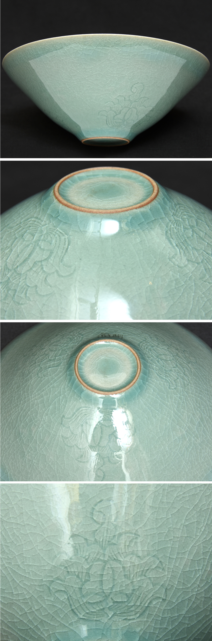 初代 柳海剛(作)高麗青磁茶碗 雲鶴 韓国青磁 専用箱 茶道具 韓国人間国宝 韓国美術 朝鮮美術 現代工芸 |