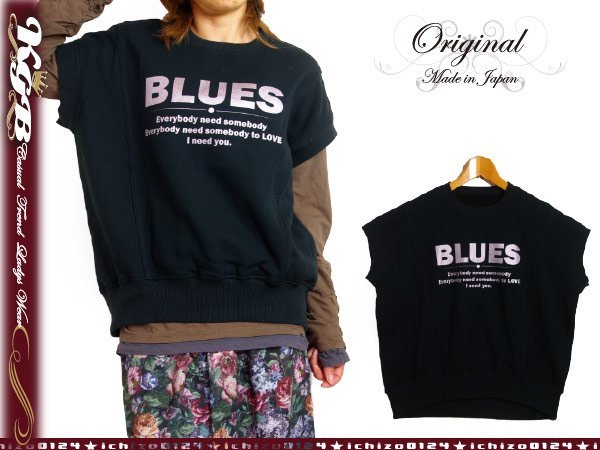 スウェット 半袖 裏毛 レディース 日本製 オリジナル パールプリント BLUES 黒 L~LL ブラック×ピンク 新品