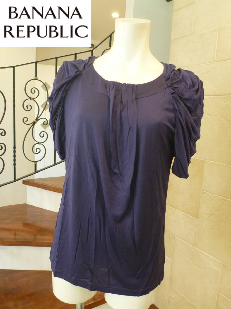 新品同様 BANANA REPUBLIC バナナリパブリック★紫 パープル シルク 半袖 カットソー L相当 M