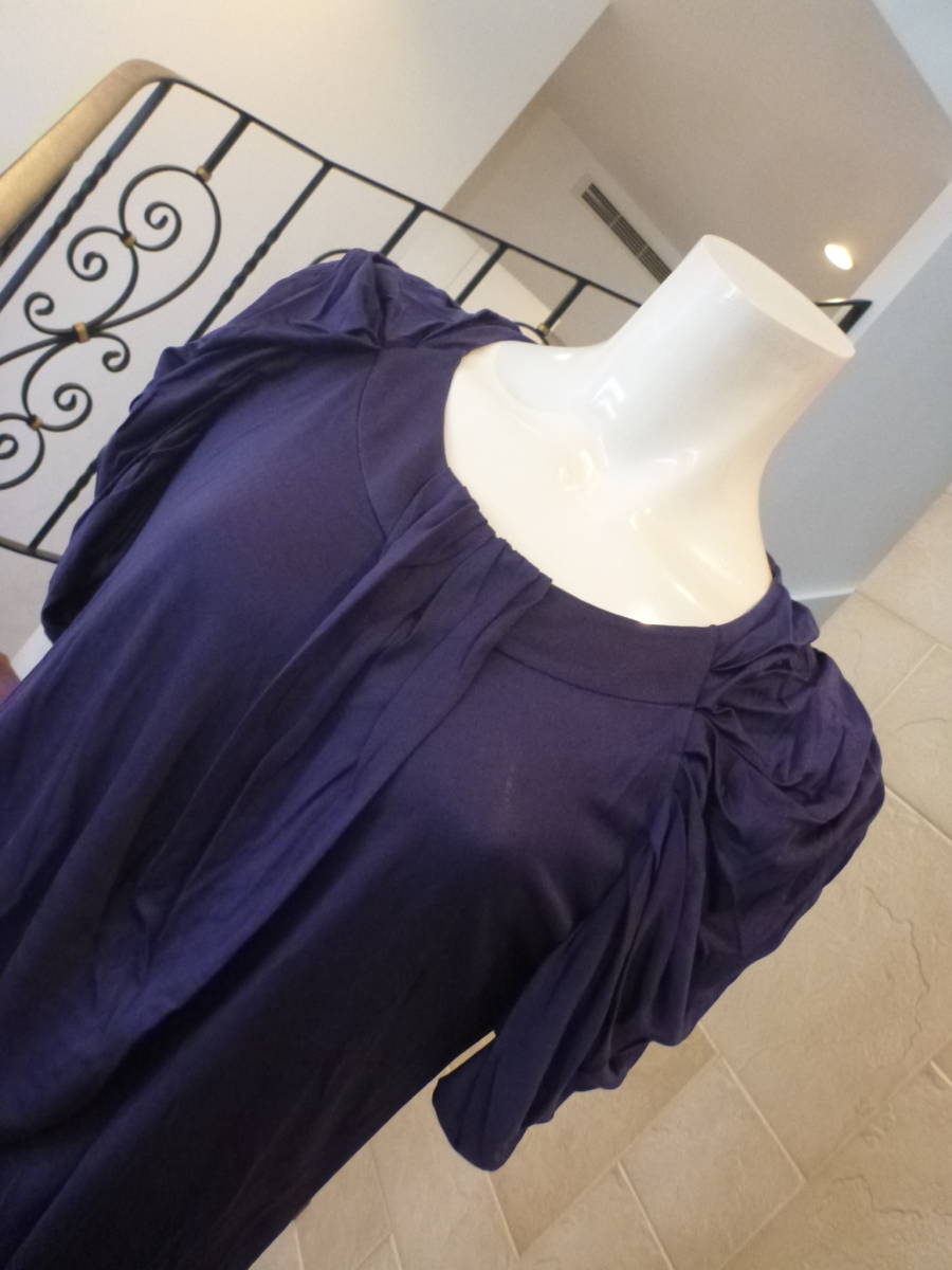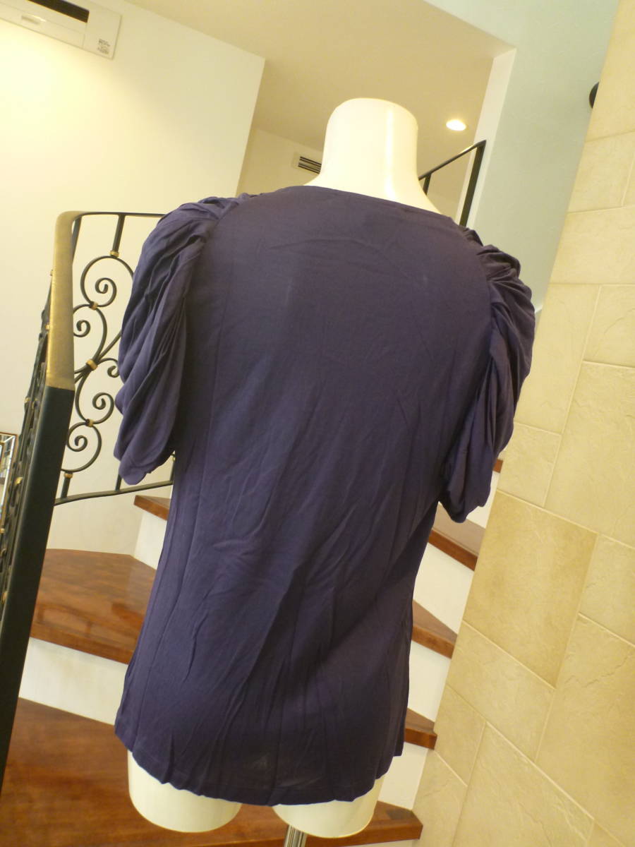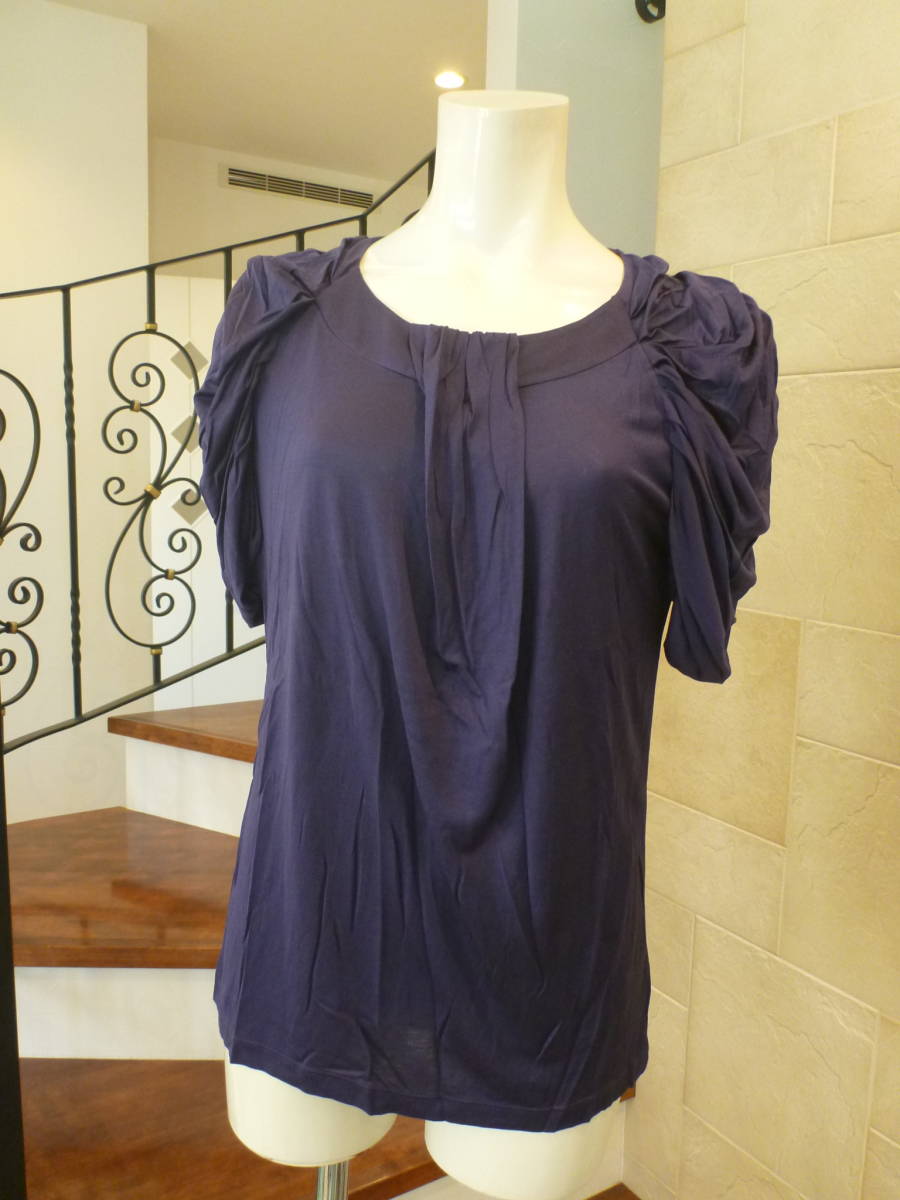 ◆紫 パープル シルク 半袖 カットソー ギャザー感が素敵