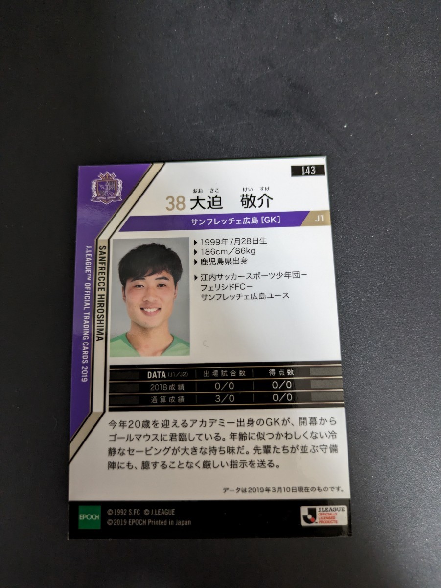 即決★Jカード2019 サンフレッチェ広島 大迫敬介